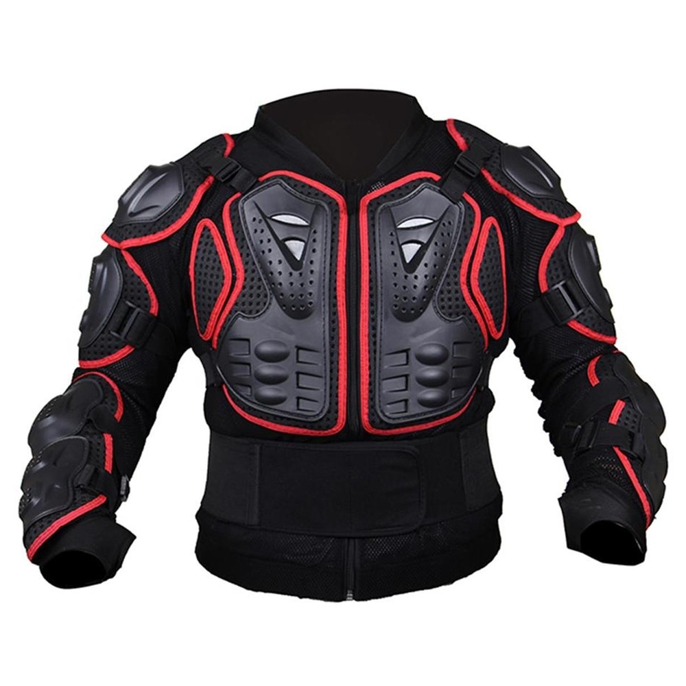 - Made of high impact resistant molded plastic, lightweight and durable - Full zipper front closure, adjustable straps throughout the arms and shoulders - Full body protection, can protect your back, chest, waist, elbow, etc